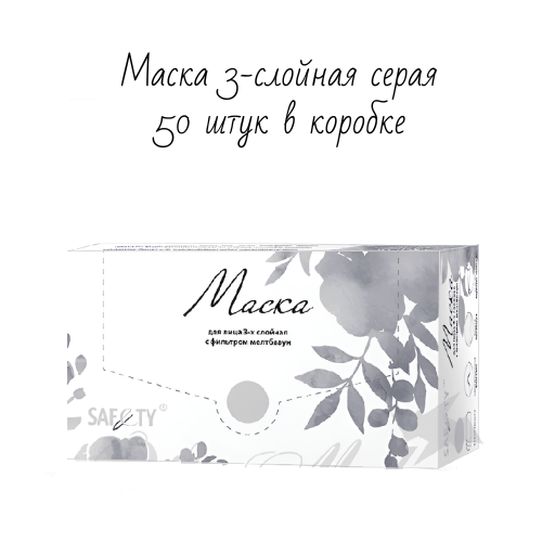 Маска 3-х слойная, мелтблаун, серая , 50 шт. в коробке SAF&TY